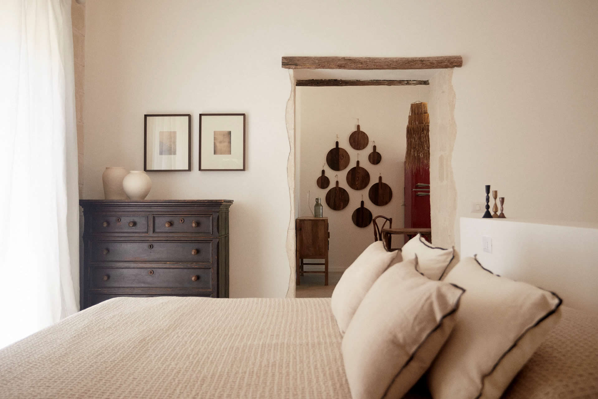 Il bianco candido degli ambienti e il calore del legno e del rattan rendono l'ambiente accogliente e raffinato.