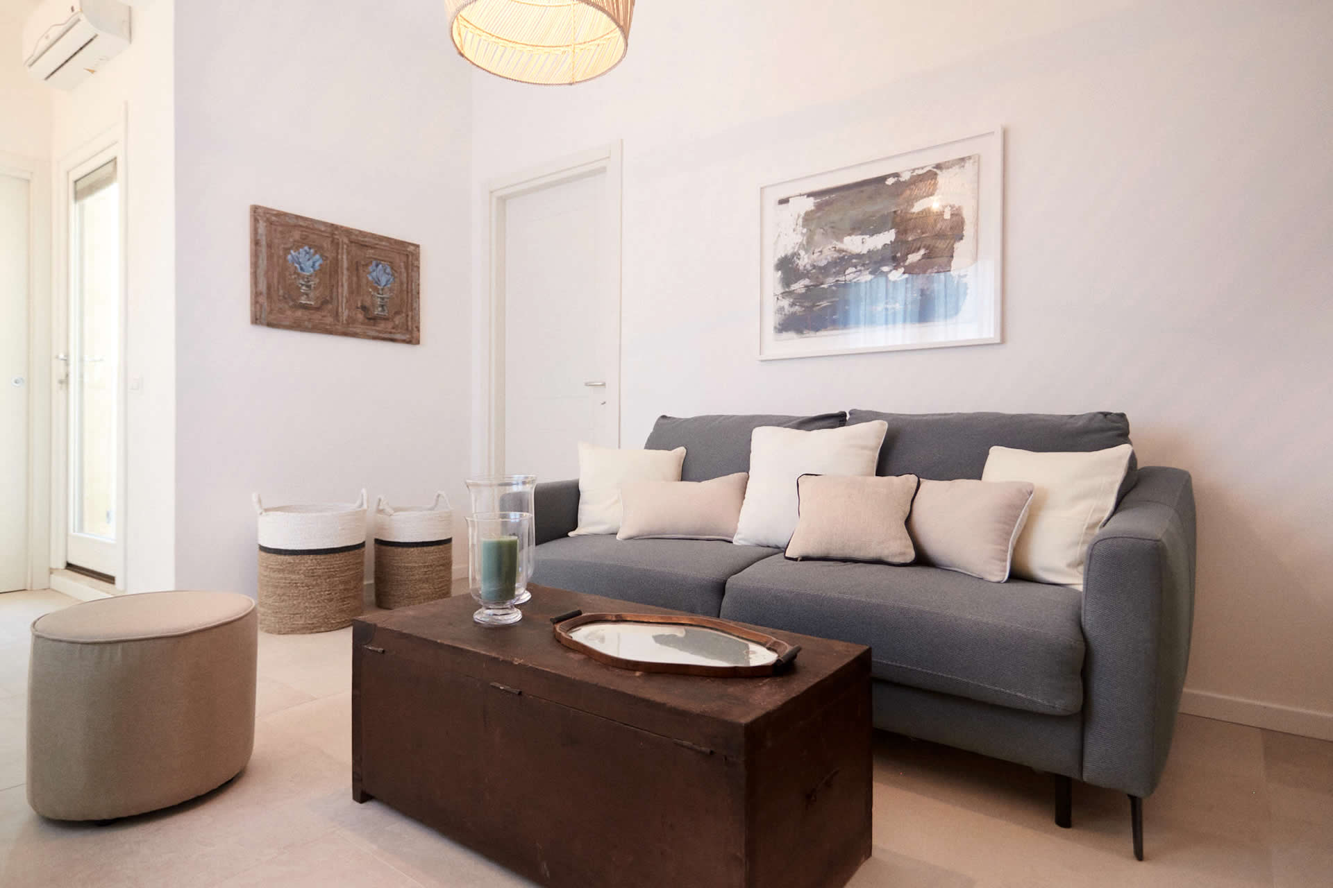 Posto al primo piano, questo appartamento vacanza è dotato di una camera matrimoniale con antistante zona living separata con divano letto matrimoniale, angolo cucina, bagno.