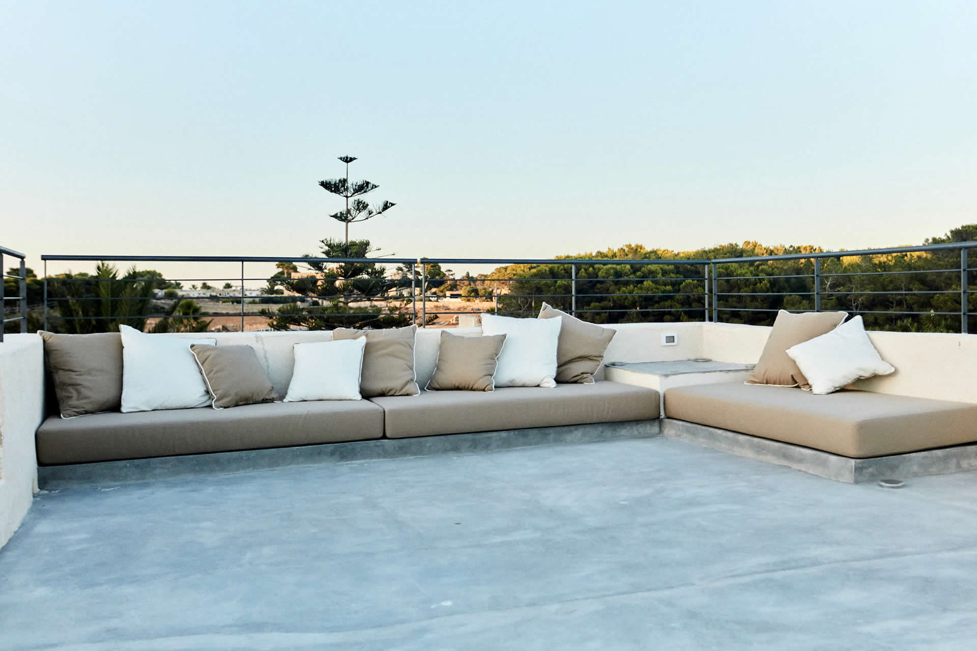 La caratteristica principale dell'appartamento è la disponibilità di una prima terrazza posta sullo stesso piano della stanza, coperta con tettoia, e di un'ulteriore terrazza sovrastante il tetto dell'edificio, accessibile da una rampa di scale, con panoramica vista mare.