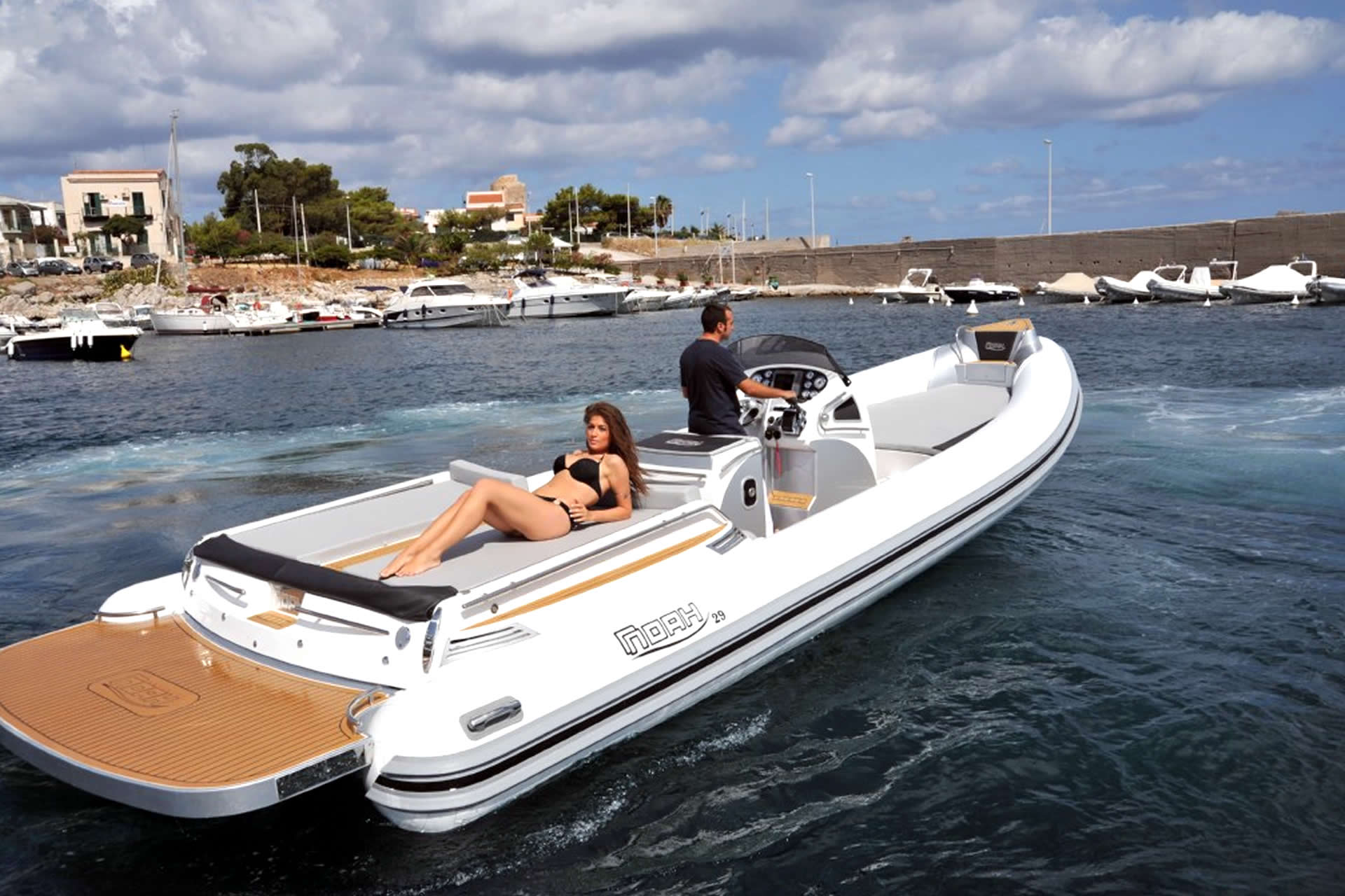 Il Noah 29 è il battello ideale per una mini-crociera in infinita libertà, ma anche per uscite giornaliere con tanti ospiti. Dotato di un lay-out del ponte di coperta che ne amplifica l'abitabilità, questo maxi-rib soddisfa le più diffuse esigenze di semplicità ed eleganza oggi avvertite dalla clientela e conferma la cura maniacale del cantiere per i particolari (bitte a scomparsa e a molla, cerniera a filo, attuatori idraulici nei coperchi più piccoli e pistone elettromeccanico per il gavone poppiero) indice di un impegno costruttivo che premia l'attenta fase progettuale di ogni modello del cantiere.